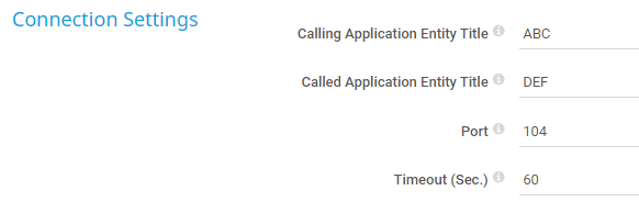 Enter the port of the DICOM interface to use for the connection. The default port is 104.